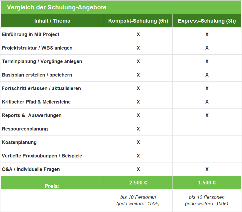 MS Project Schulung: Express (4h) & Kompakt (6h)